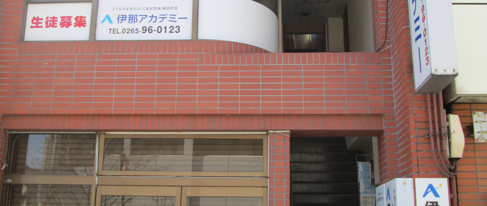 県合同庁舎の西側すぐ近く、伊那市駅まで徒歩3分くらいです。小中高の生徒、浪人生、社会人さんどなたでも学習指導受け付けております。ゆったり勉強できる自習席も15席用意してます。